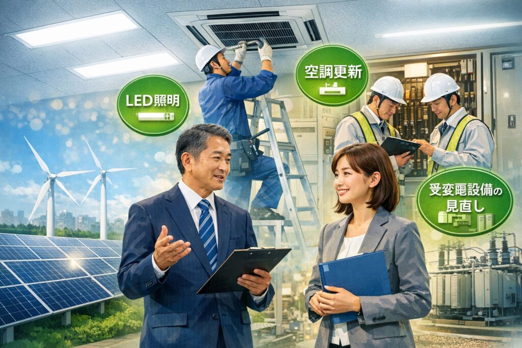 省エネルギー化をお考えのオーナー様にも、トータルで費用対効果の高い省エネルギー・省電力化の御提案をさせて戴きます。近年はLED照明化だけでは無く、空調機の更新や受変電設備の見直し・更新などで、より効果的な省エネルギー化促進のお手伝いをさせて戴きます。