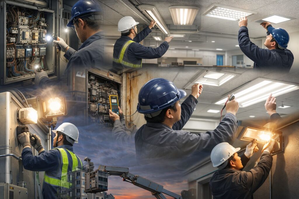 小規模~大規模物件まで、様々な電気設備の改修工事に対応いたします。近年は老朽電気設備の保守~更新や、照明器具の