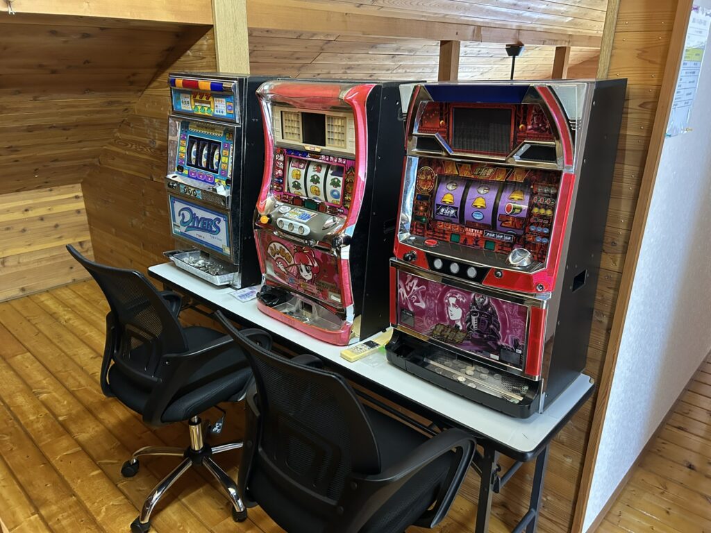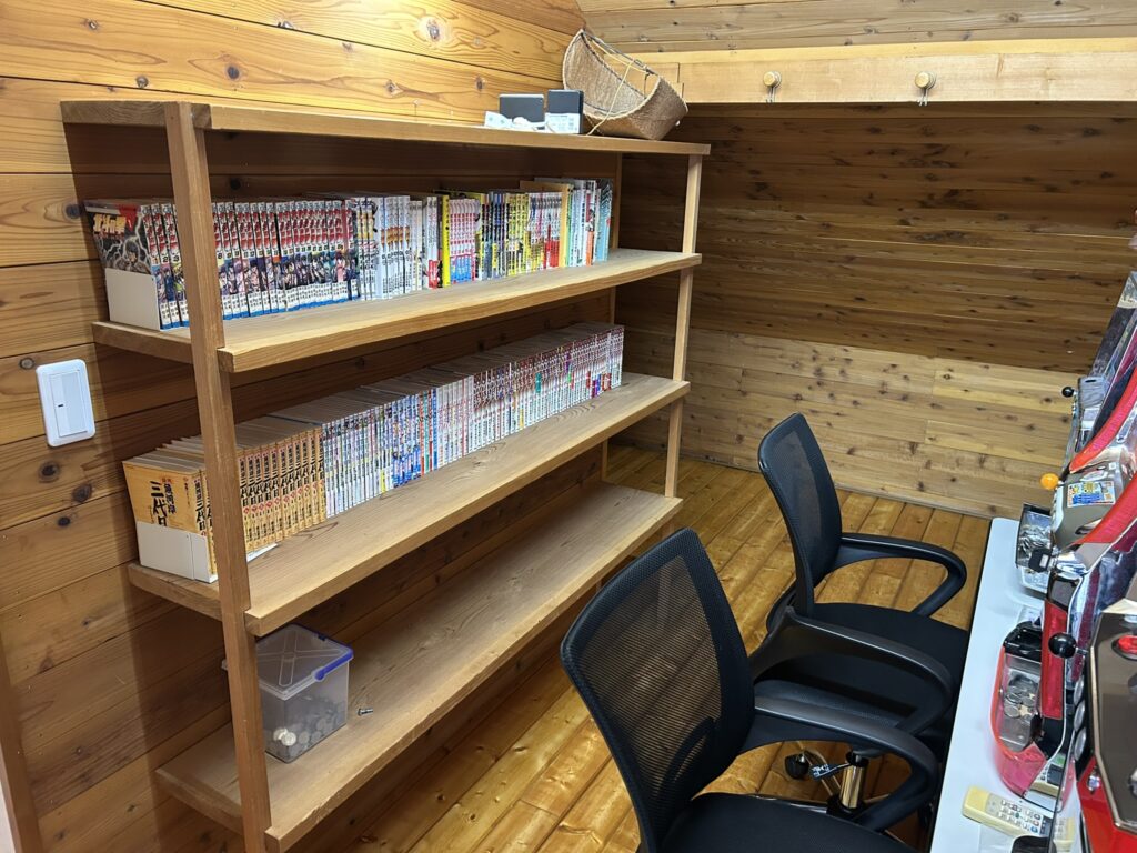 娯楽室(麻雀卓)、漫画本文庫、懐かしパチスロコーナー